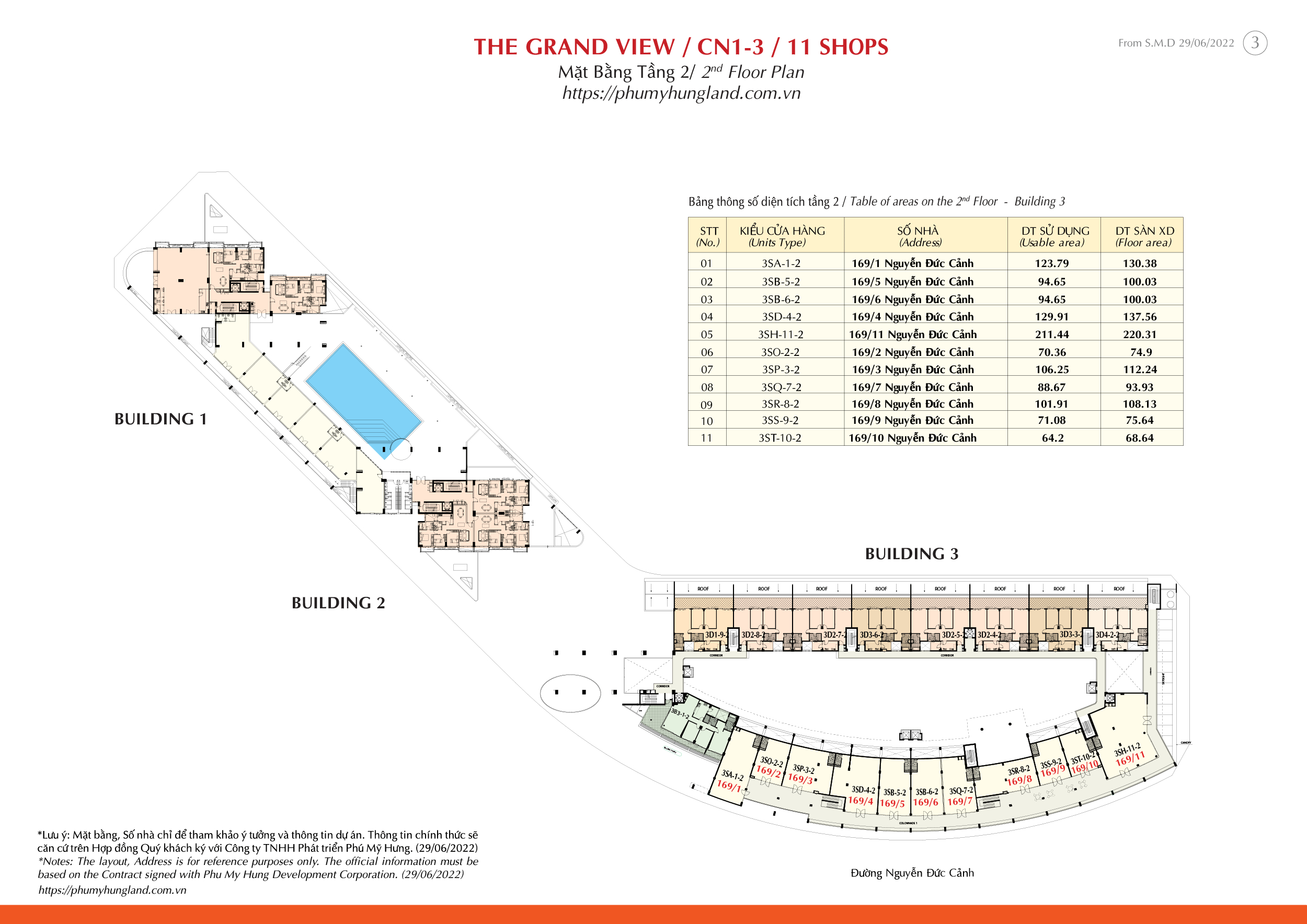 Trong tổng số 11 căn Shophouse The Grand View mở bán đợt này đều nằm ở vị trí tầng 2 của dự án. Mặt tiền đường Nguyễn Đức Cảnh sầm uất.